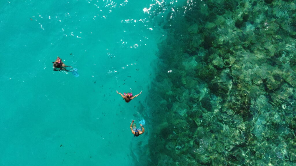 満潮時は海の青さがより鮮やかになり、シュノーケリング中の透明度も抜群。